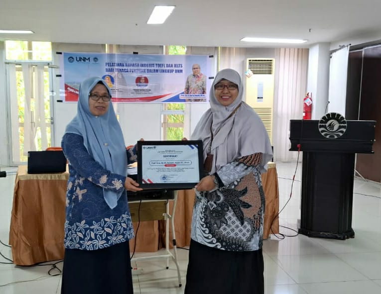 Pelatihan ini bertujuan untuk memberikan pemahaman dasar mengenai persiapan ujian IELTS, khususnya bagi para peserta yang berasal dari kalangan dosen-dosen muda lintas program studi dan fakultas di lingkungan UNM. Dalam sesi pemaparannya, Prof. Azisah menjelaskan strategi efektif dalam menghadapi empat komponen utama IELTS — Listening, Reading, Writing, dan Speaking — serta pentingnya pembiasaan diri terhadap pola bahasa akademik dalam konteks internasional.